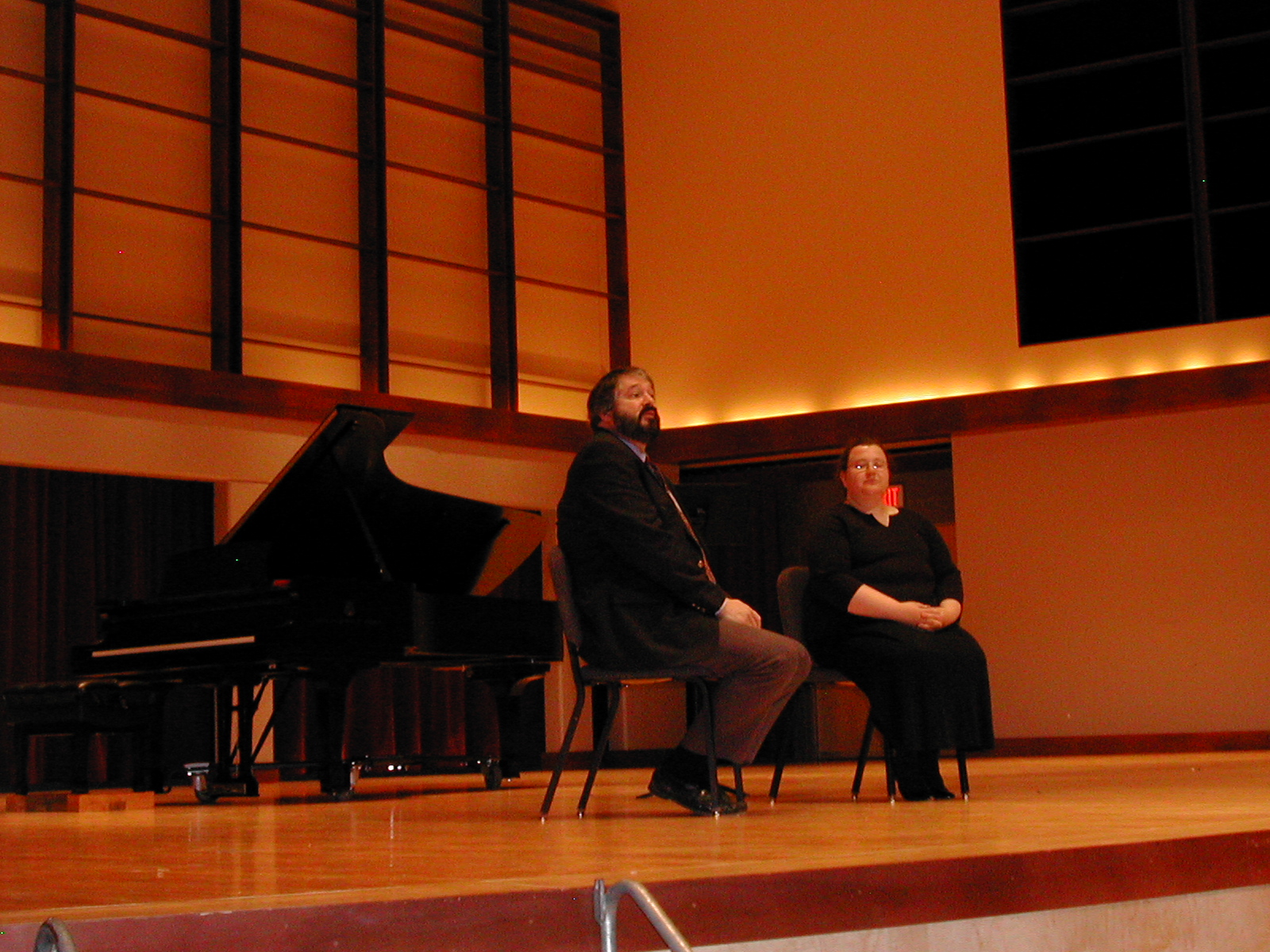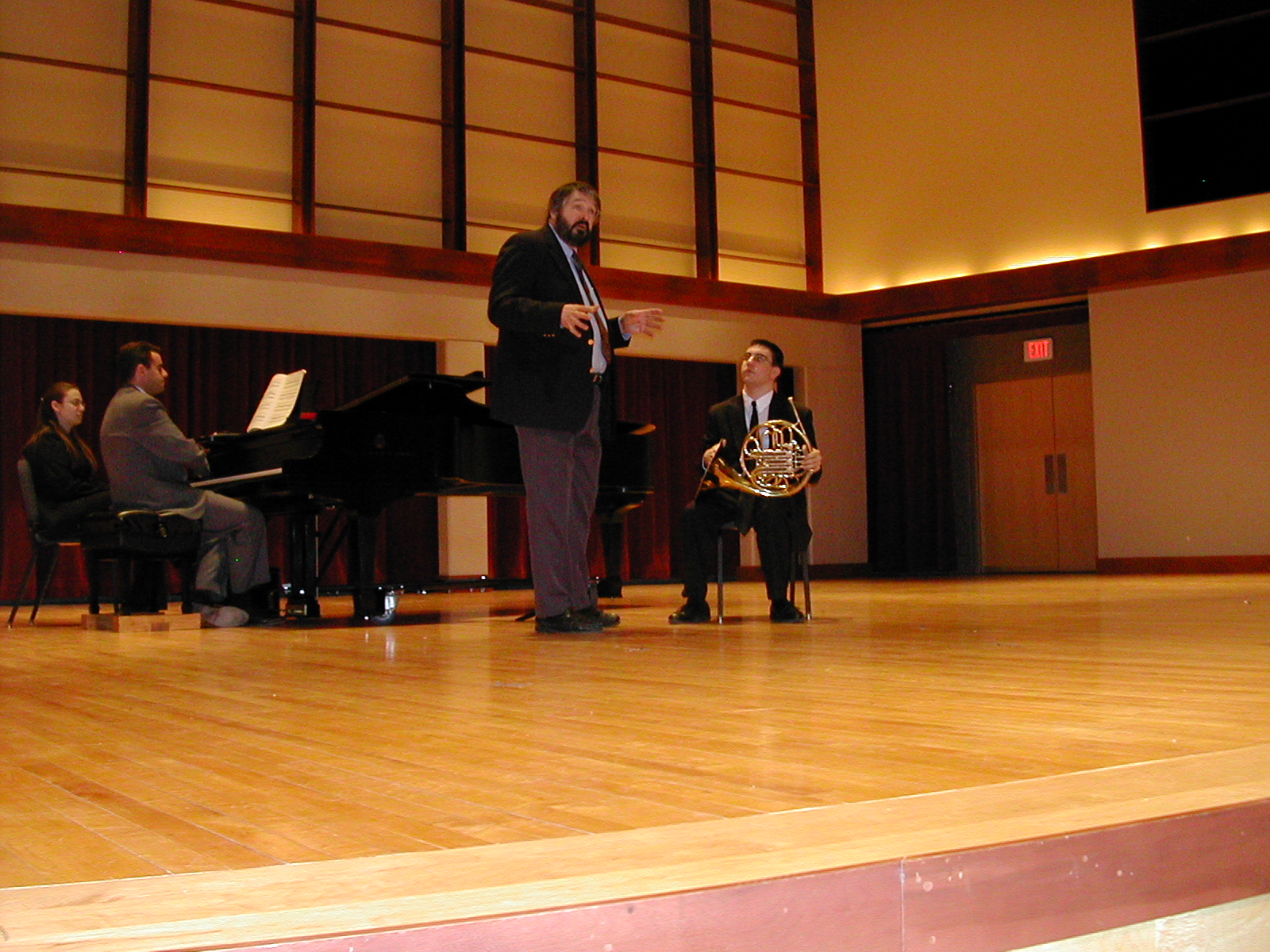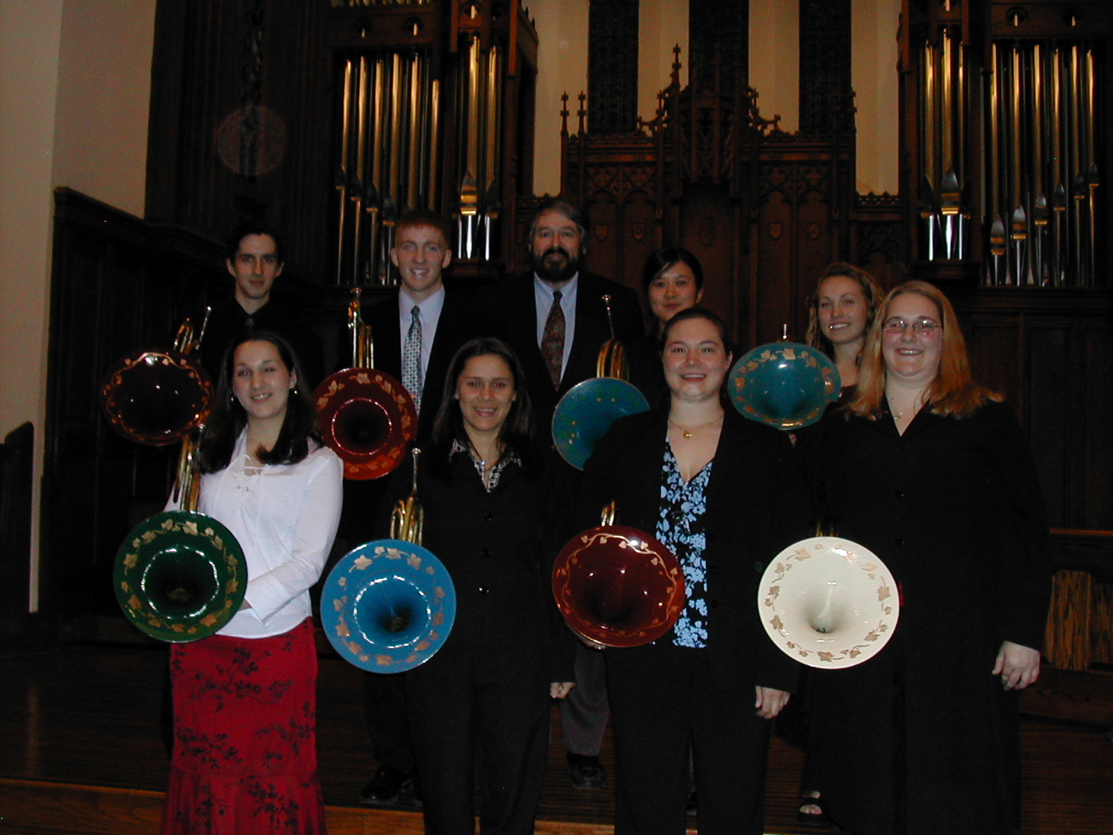 A happy moment after the performance of Lowell Greer’s Gallatin Fanfare at the end of WIU 2003 Horn Festival.