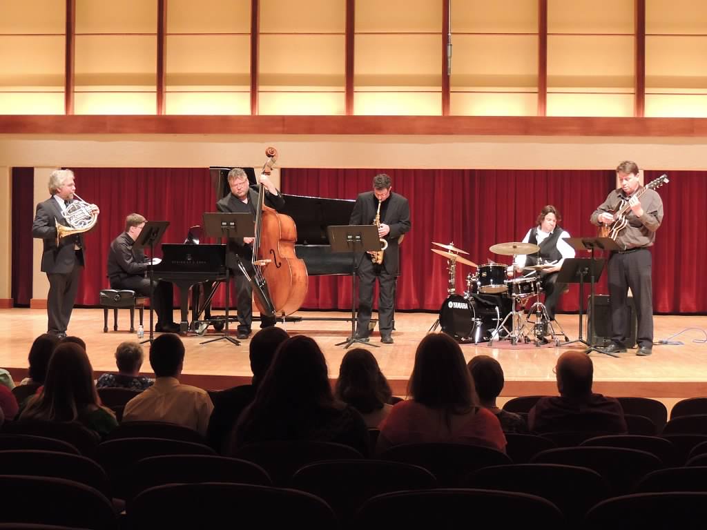 Valved horn performances included contemporary classical compositions by Randall Faust and Paul Johnston, (winner of the 2014 International Horn Society Composition Contest), as well as six jazz compositions performed with members of the Jazz faculty of Western Illinois University-John Vana-saxophone, George Turner, guitar, Matt Hughes, bass, Kevin Nichols, drums, and pianist (and hornist) Michael Aitchison.