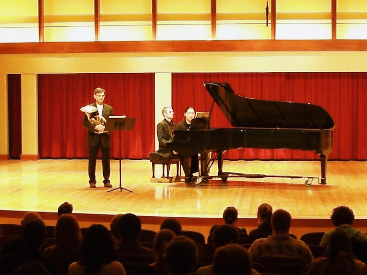 - Jeff Nelsen and Tomoko Kanamaru performing the same Michael Haydn Concerto for Two Horns as Annamia Larsson—after having practiced a different one. (Fearlessness was demonstrated in various forms during the Symposium.)