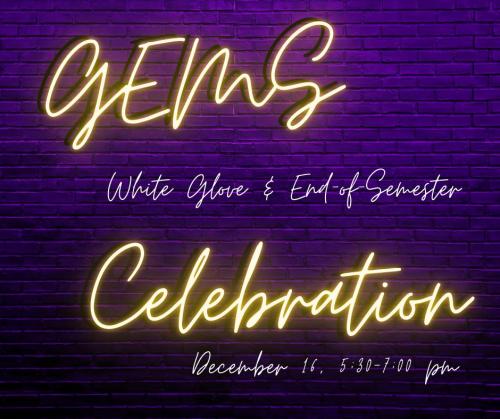MOLINE, IL - - G.E.M.S. Graduate Experience in Museum Studies is hosting its end-of-the-semester and graduation celebration from 5:30-7 p.m. Tuesday, Dec. 16, in Riverfront Hall, room 222, with a white-glove ceremony and remarks at 5:45 p.m.